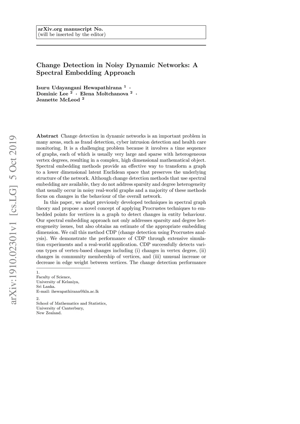 Change Detection in Noisy Dynamic Networks: A Spectral Embedding