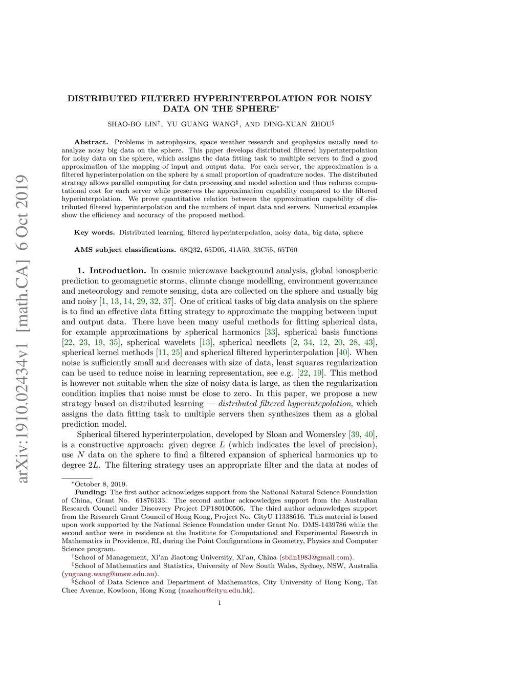 Distributed filtered hyperinterpolation for noisy data on the sphere