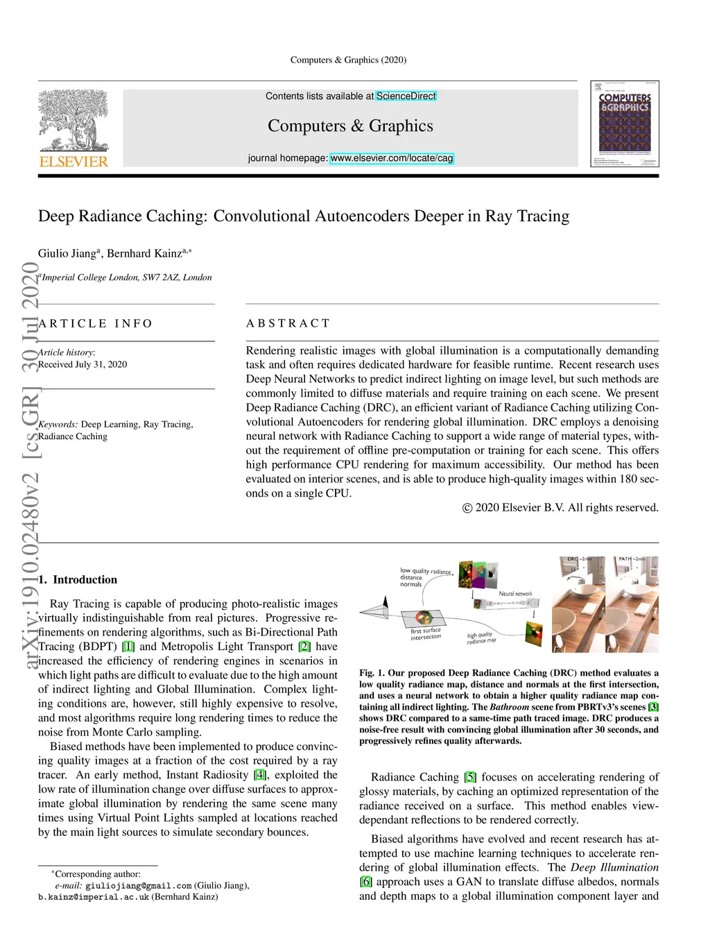 Deep Radiance Caching: Convolutional Autoencoders Deeper in Ray Tracing