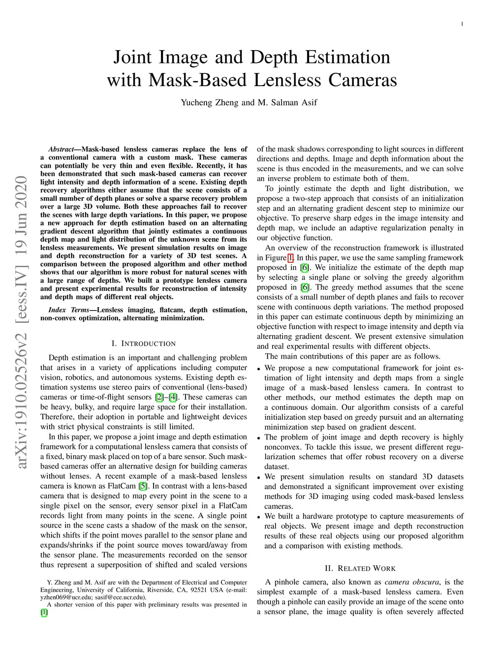 Joint Image and Depth Estimation with Mask-Based Lensless Cameras