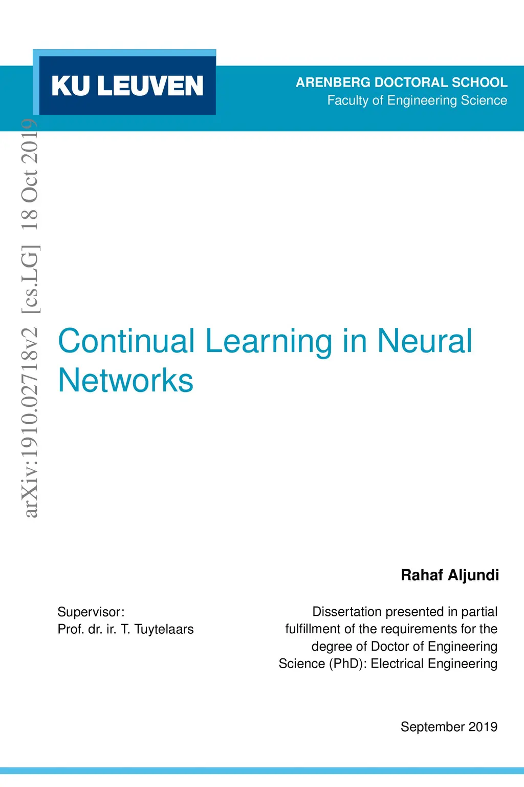 Continual Learning in Neural Networks