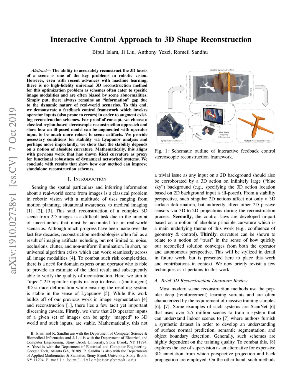 The ability to accurately reconstruct the 3D facets of a scene is one of the key problems in robotic vision. However, even with recent advances with machine learning, there is no high-fidelity universal 3D reconstruction method for this optimization problem as schemes often cater to specific image modalities and are often biased by scene abnormalities. Simply put, there always remains an information gap due to the dynamic nature of real-world scenarios. To this end, we demonstrate a feedback control framework which invokes operator inputs (also prone to errors) in order to augment existing reconstruction schemes. For proof-of-concept, we choose a classical region-based stereoscopic reconstruction approach and show how an ill-posed model can be augmented with operator input to be much more robust to scene artifacts. We provide necessary conditions for stability via Lyapunov analysis and perhaps more importantly, we show that the stability depends on a notion of absolute curvature. Mathematically, this aligns with previous work that has shown Ricci curvature as proxy for functional robustness of dynamical networked systems. We conclude with results that show how our method can improve standalone reconstruction schemes.