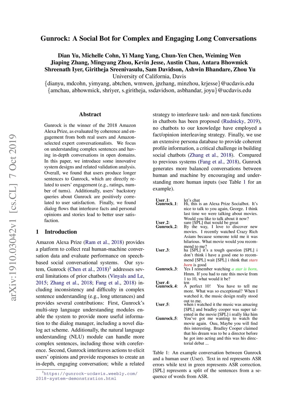 Gunrock: A Social Bot for Complex and Engaging Long Conversations