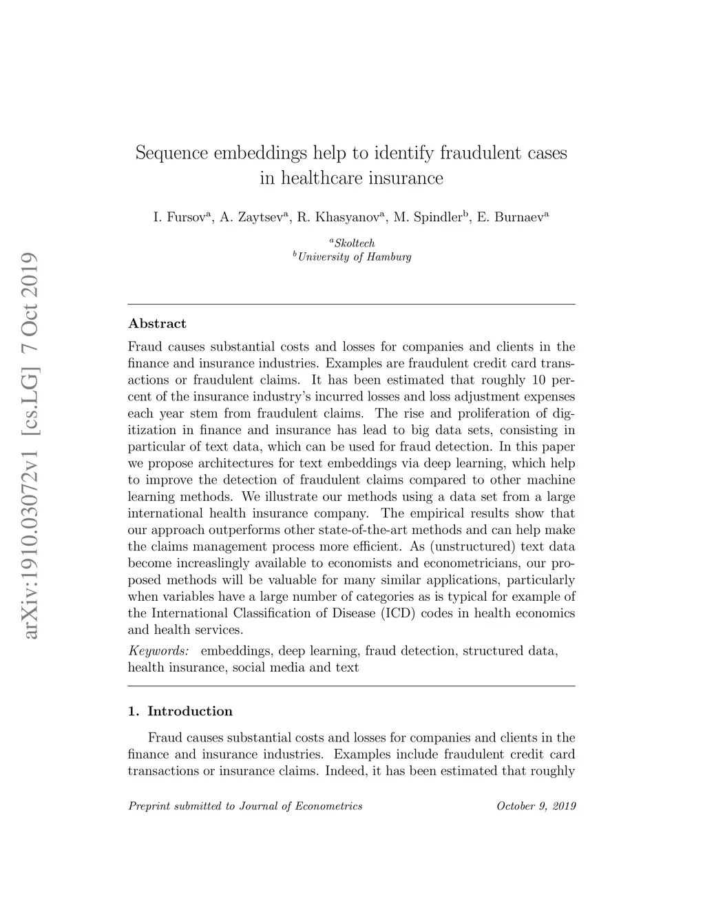 Sequence embeddings help to identify fraudulent cases in healthcare