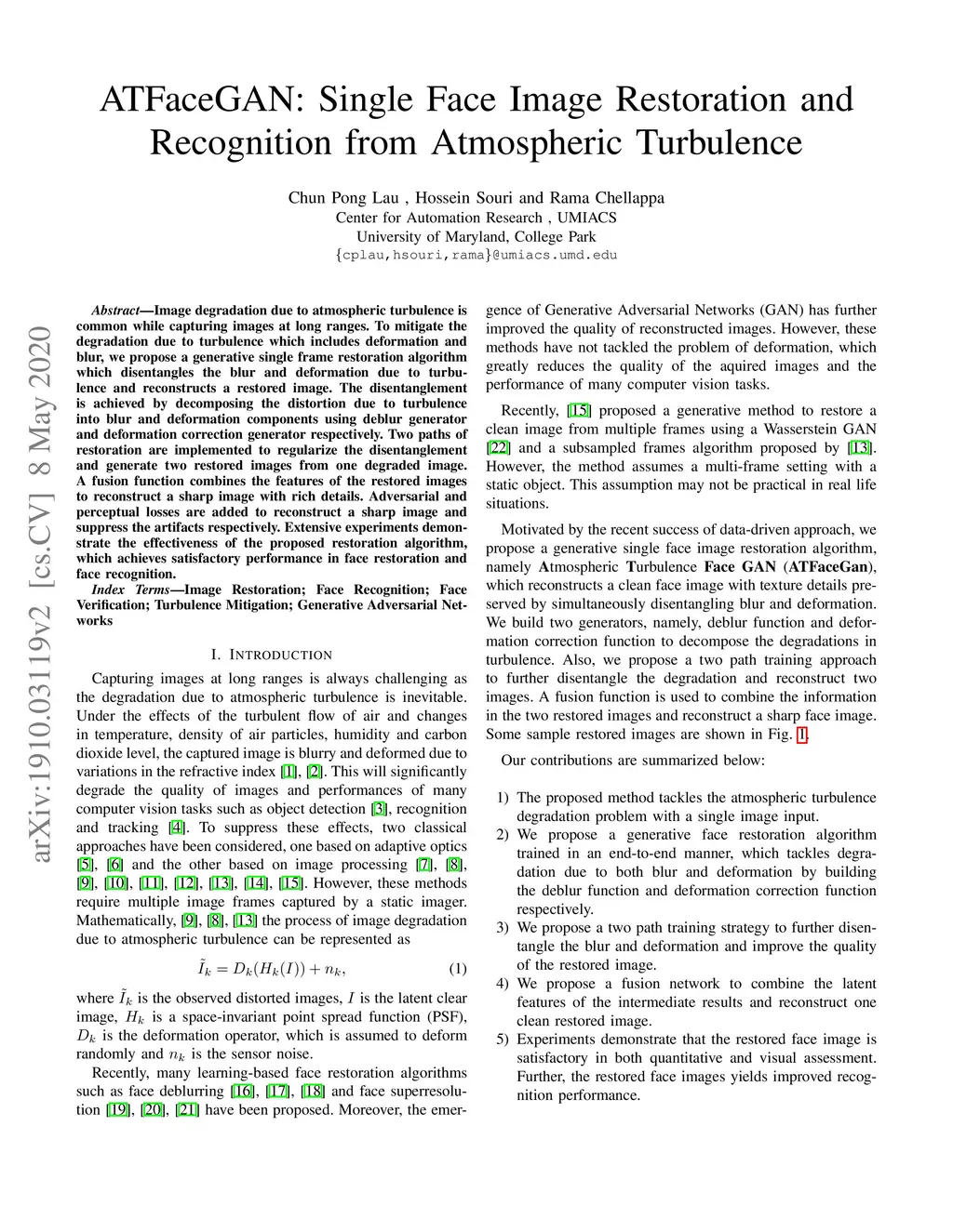 ATFaceGAN: Single Face Image Restoration and Recognition from