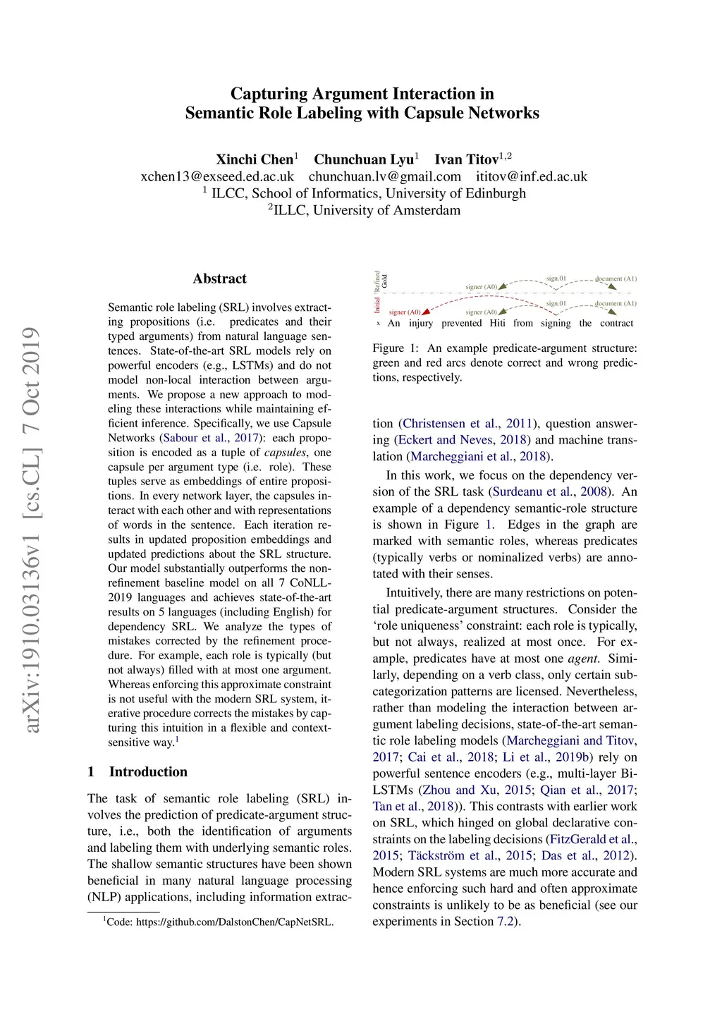 Capturing Argument Interaction in Semantic Role Labeling with Capsule