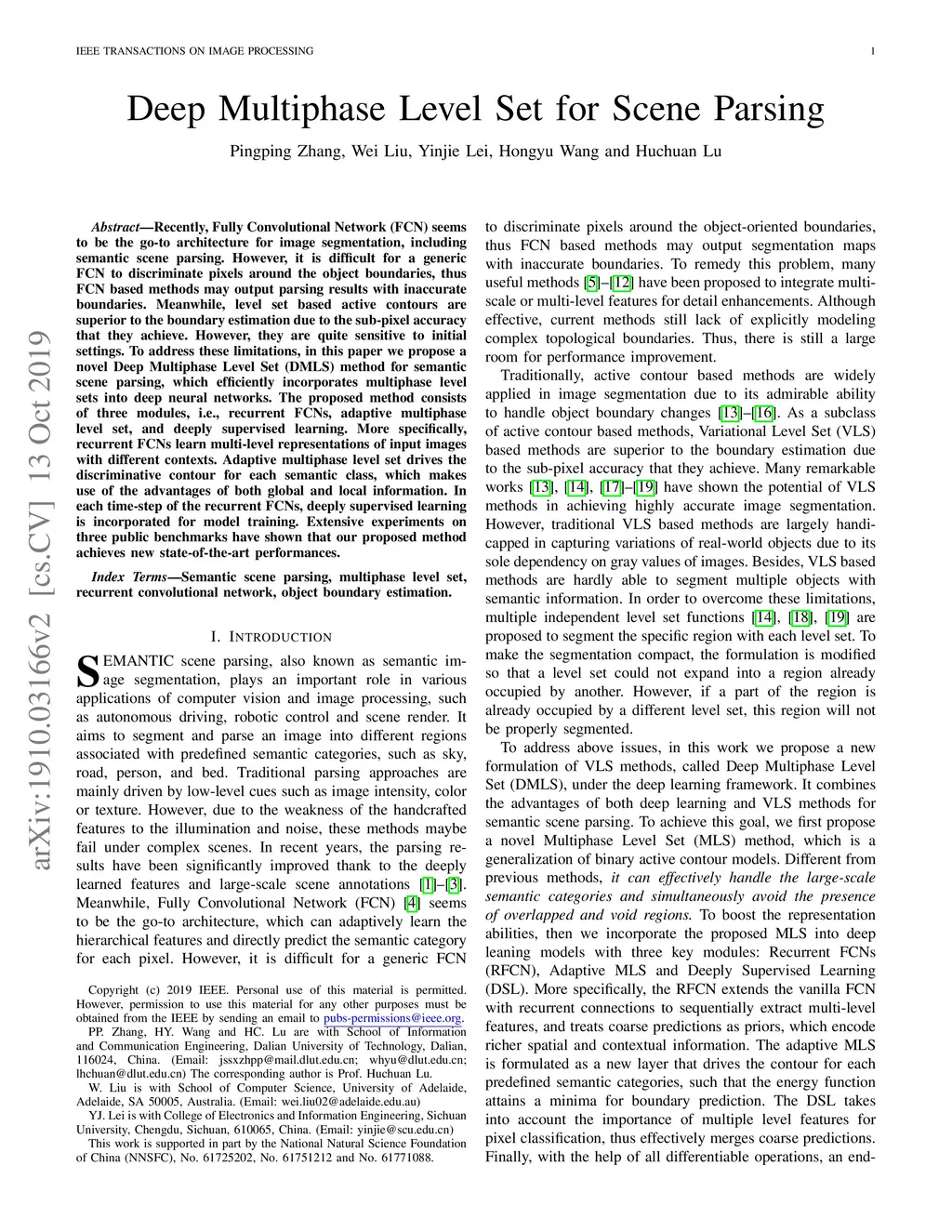 Recently, Fully Convolutional Network (FCN) seems to be the go-to architecture for image segmentation, including semantic scene parsing. However, it is difficult for a generic FCN to discriminate pixels around the object boundaries, thus FCN based methods may output parsing results with inaccurate boundaries. Meanwhile, level set based active contours are superior to the boundary estimation due to the sub-pixel accuracy that they achieve. However, they are quite sensitive to initial settings. To address these limitations, in this paper we propose a novel Deep Multiphase Level Set (DMLS) method for semantic scene parsing, which efficiently incorporates multiphase level sets into deep neural networks. The proposed method consists of three modules, i.e., recurrent FCNs, adaptive multiphase level set, and deeply supervised learning. More specifically, recurrent FCNs learn multi-level representations of input images with different contexts. Adaptive multiphase level set drives the discriminative contour for each semantic class, which makes use of the advantages of both global and local information. In each time-step of the recurrent FCNs, deeply supervised learning is incorporated for model training. Extensive experiments on three public benchmarks have shown that our proposed method achieves new state-of-the-art performances.
