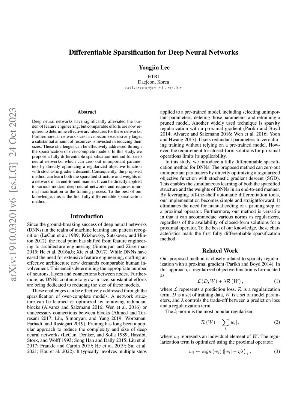 Differentiable Sparsification for Deep Neural Networks