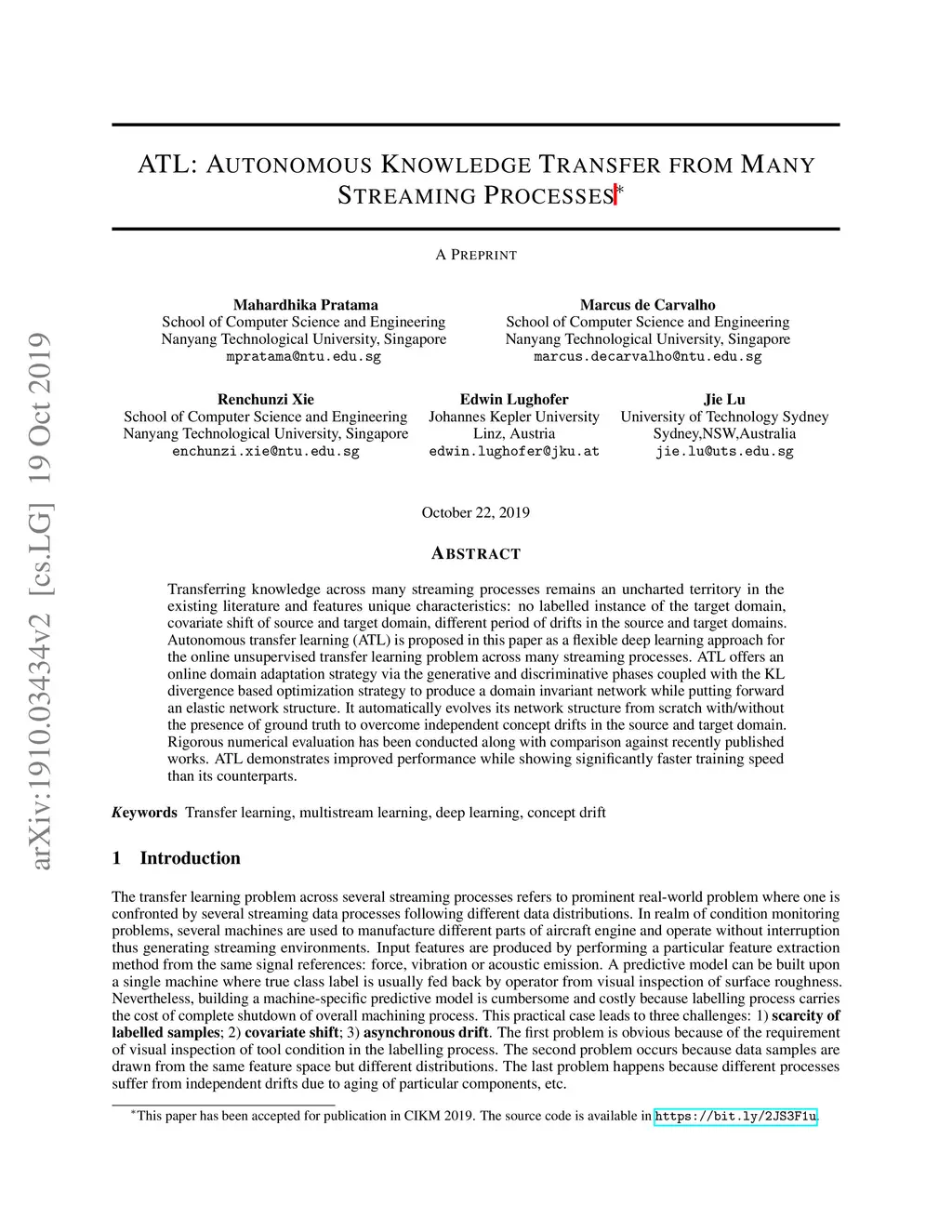 ATL: Autonomous Knowledge Transfer from Many Streaming Processes