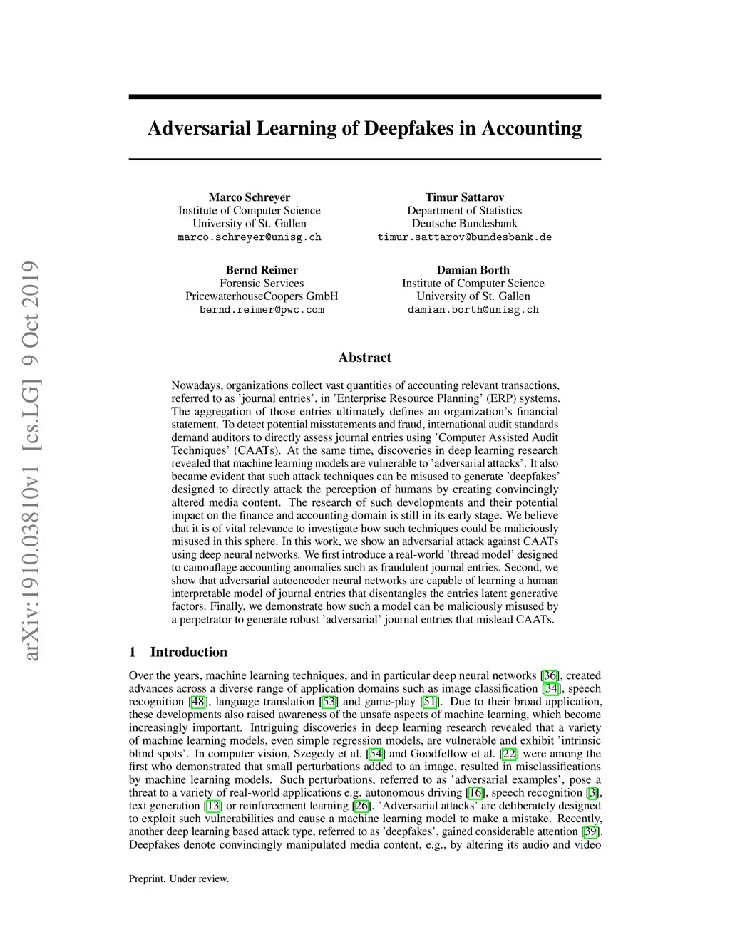 Adversarial Learning of Deepfakes in Accounting