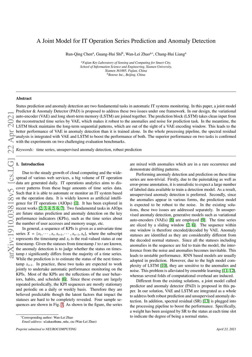 A Joint Model for Anomaly Detection and Trend Prediction on IT Operation