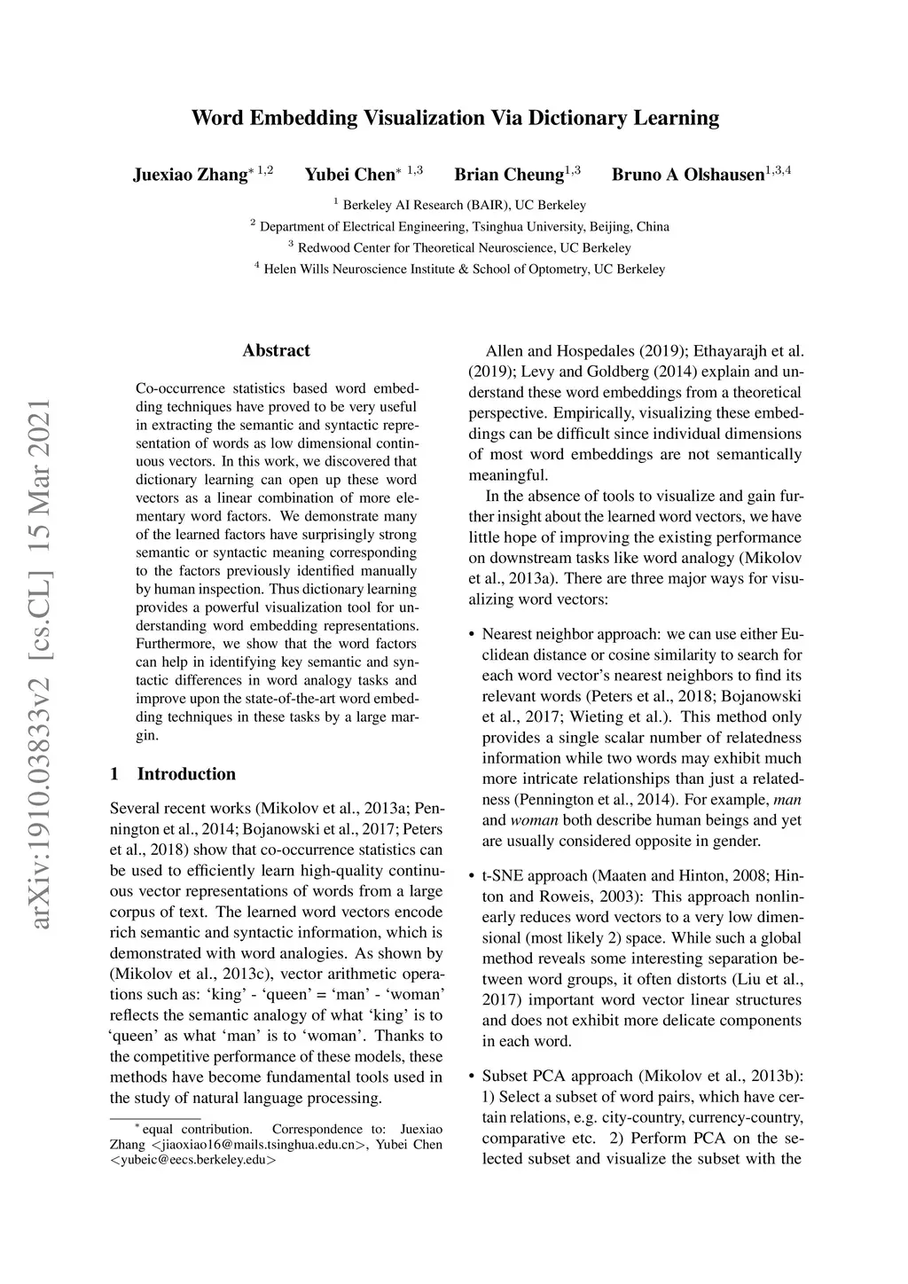 Co-occurrence statistics based word embedding techniques have proved to be very useful in extracting the semantic and syntactic representation of words as low dimensional continuous vectors. In this work, we discovered that dictionary learning can open up these word vectors as a linear combination of more elementary word factors. We demonstrate many of the learned factors have surprisingly strong semantic or syntactic meaning corresponding to the factors previously identified manually by human inspection. Thus dictionary learning provides a powerful visualization tool for understanding word embedding representations. Furthermore, we show that the word factors can help in identifying key semantic and syntactic differences in word analogy tasks and improve upon the state-of-the-art word embedding techniques in these tasks by a large margin.