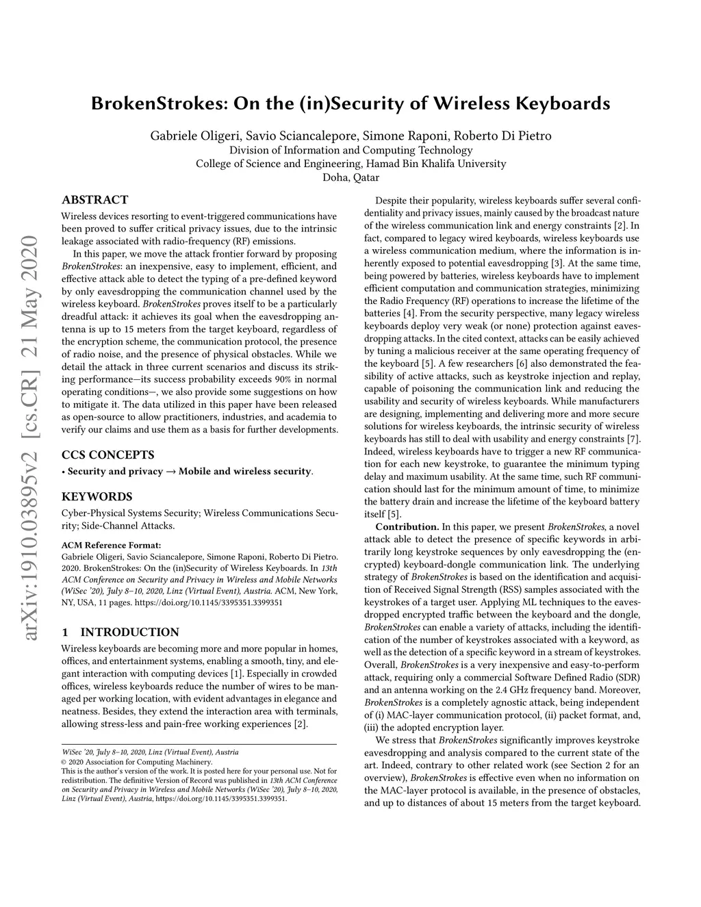 BrokenStrokes: On the (in)Security of Wireless Keyboards