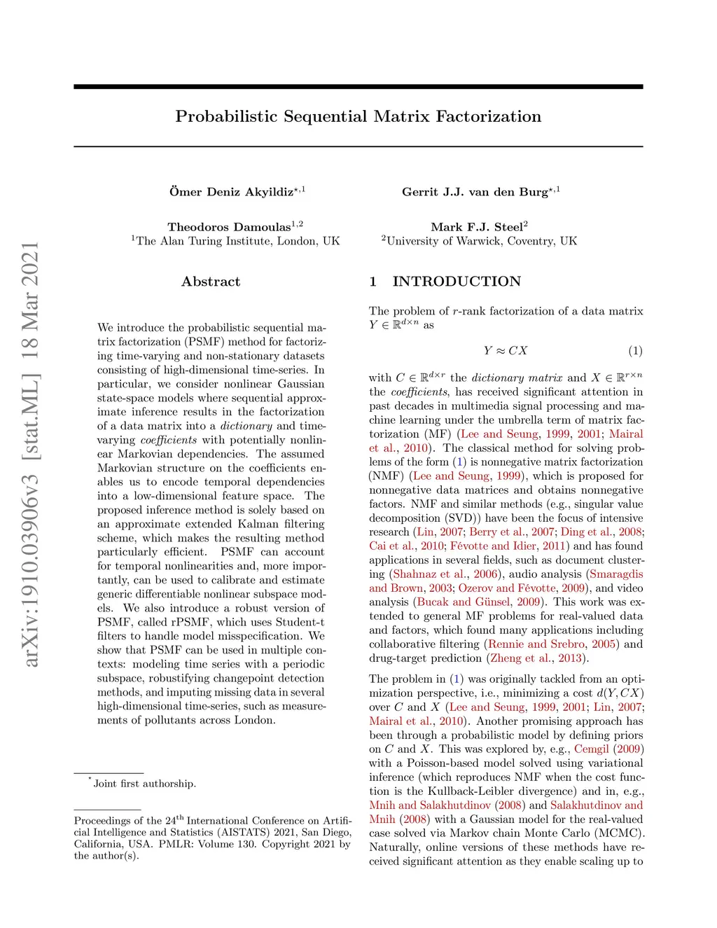 Probabilistic sequential matrix factorization