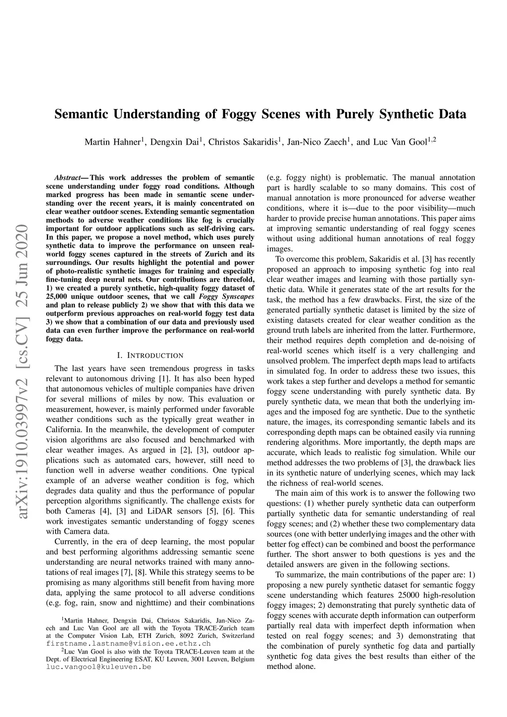 Semantic Understanding of Foggy Scenes with Purely Synthetic Data