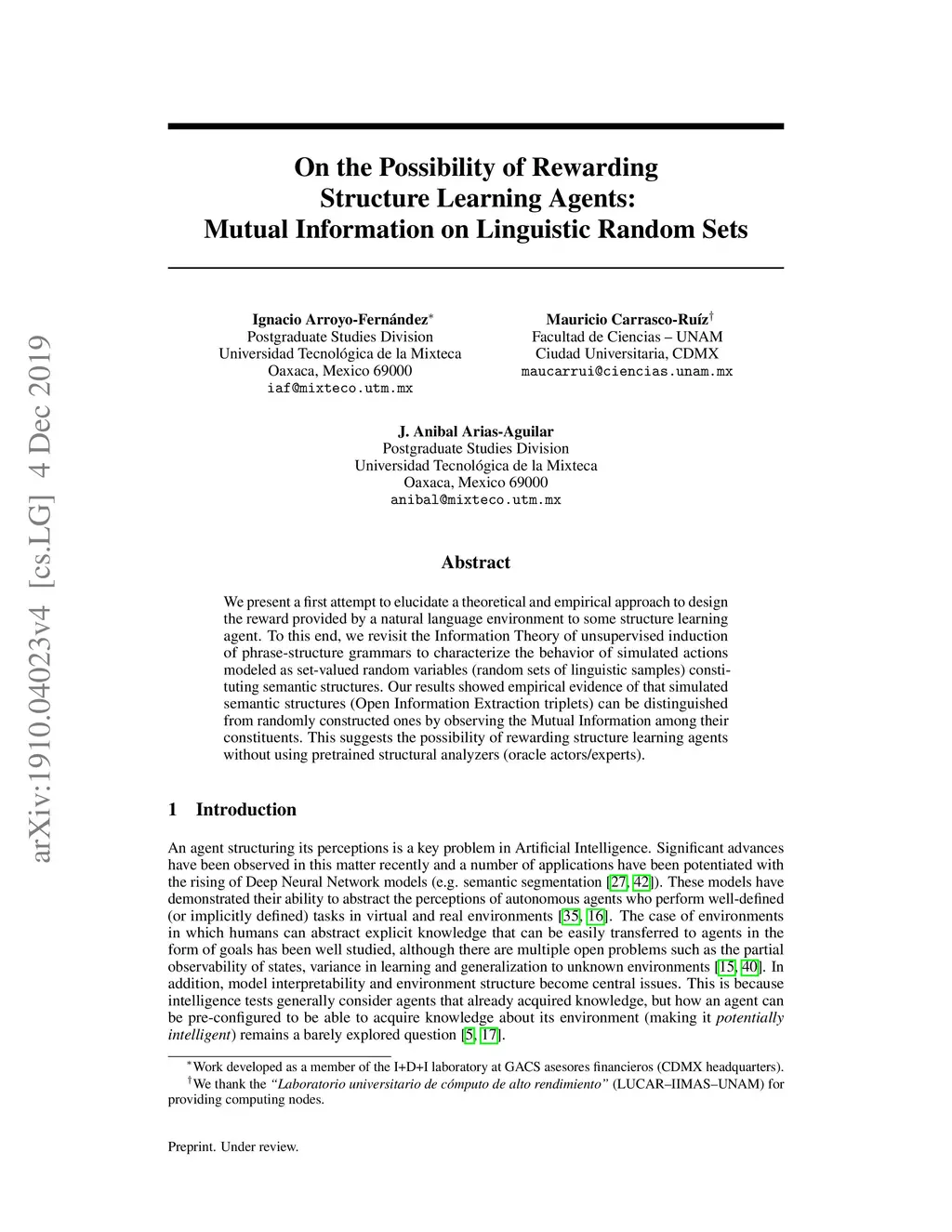 On the Possibility of Rewarding Structure Learning Agents: Mutual