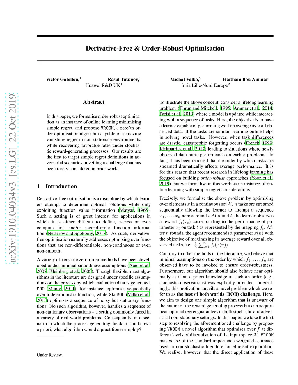 In this paper, we formalise order-robust optimisation as an instance of online learning minimising simple regret, and propose Vroom, a zero'th order optimisation algorithm capable of achieving vanishing regret in non-stationary environments, while recovering favorable rates under stochastic reward-generating processes. Our results are the first to target simple regret definitions in adversarial scenarios unveiling a challenge that has been rarely considered in prior work.