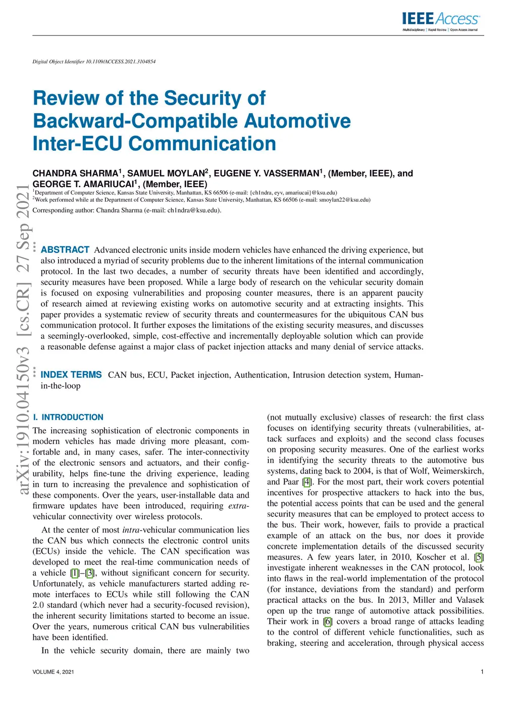 Review of the Security of Backward-Compatible Automotive Inter-ECU
