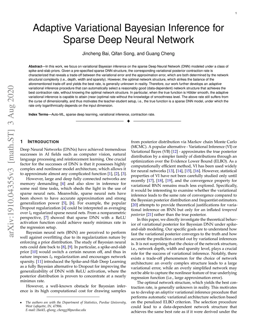 In this work, we focus on variational Bayesian inference on the sparse Deep Neural Network (DNN) modeled under a class of spike-and-slab priors. Given a pre-specified sparse DNN structure, the corresponding variational posterior contraction rate is characterized that reveals a trade-off between the variational error and the approximation error, which are both determined by the network structural complexity (i.e., depth, width and sparsity). However, the optimal network structure, which strikes the balance of the aforementioned trade-off and yields the best rate, is generally unknown in reality. Therefore, our work further develops an {\em adaptive} variational inference procedure that can automatically select a reasonably good (data-dependent) network structure that achieves the best contraction rate, without knowing the optimal network structure. In particular, when the true function is H{\"o}lder smooth, the adaptive variational inference is capable to attain (near-)optimal rate without the knowledge of smoothness level. The above rate still suffers from the curse of dimensionality, and thus motivates the teacher-student setup, i.e., the true function is a sparse DNN model, under which the rate only logarithmically depends on the input dimension.