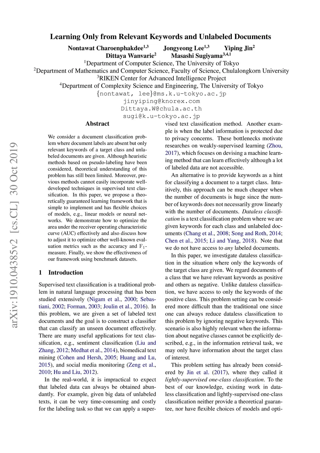 Learning Only from Relevant Keywords and Unlabeled Documents