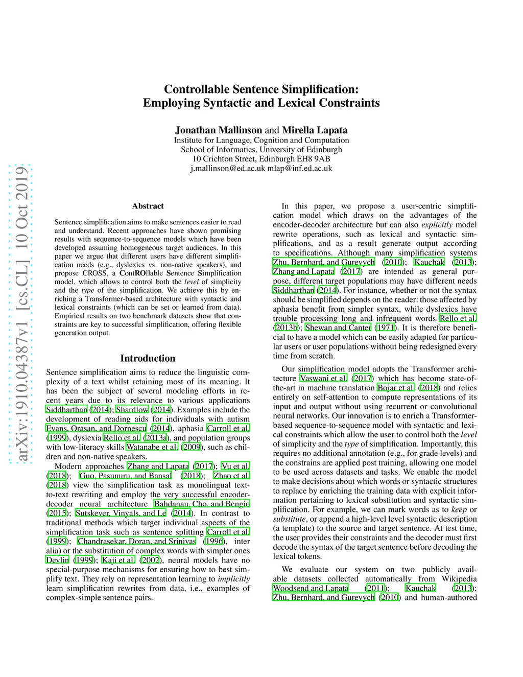 Controllable Sentence Simplification: Employing Syntactic and Lexical