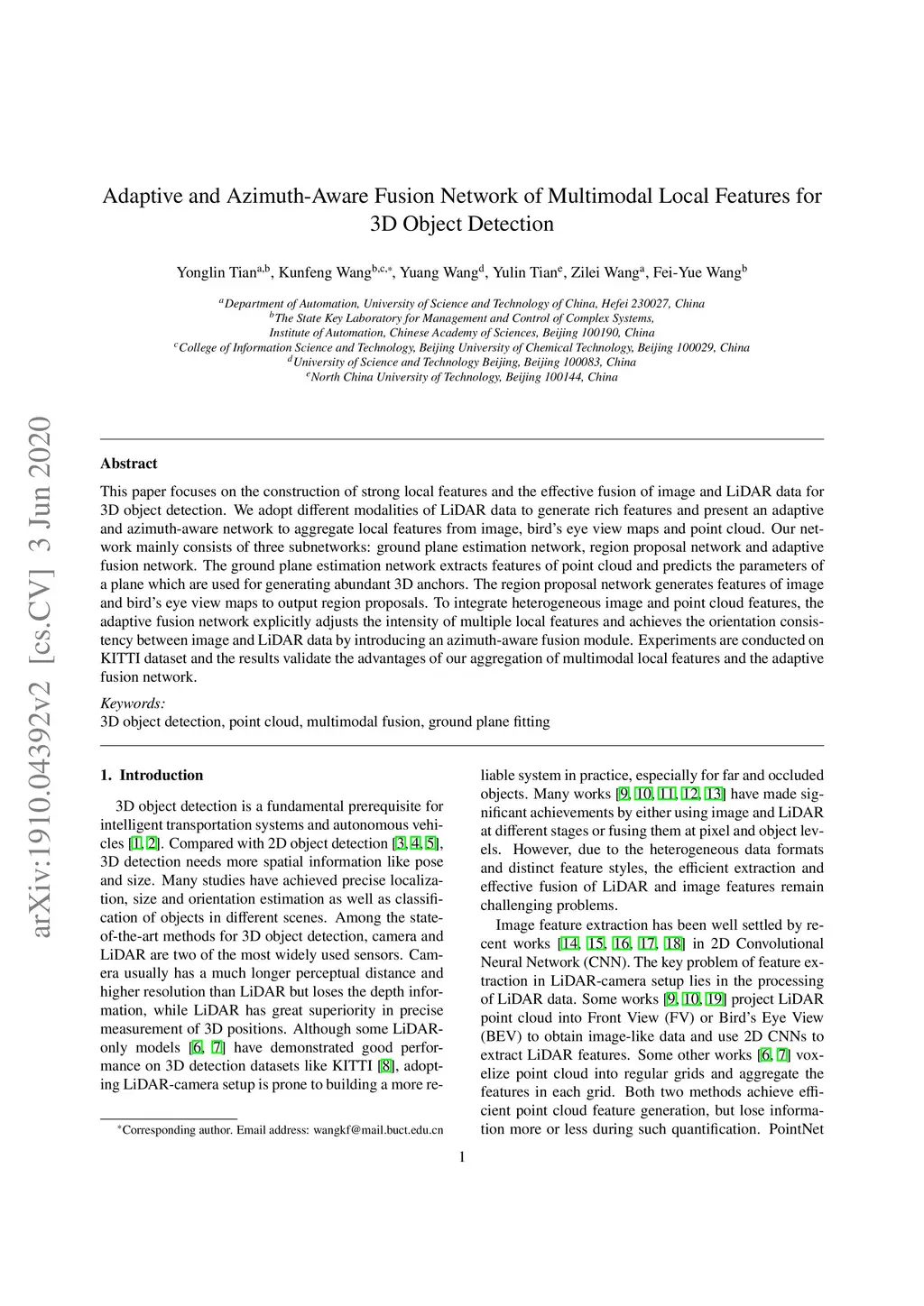 Adaptive and Azimuth-Aware Fusion Network of Multimodal Local Features