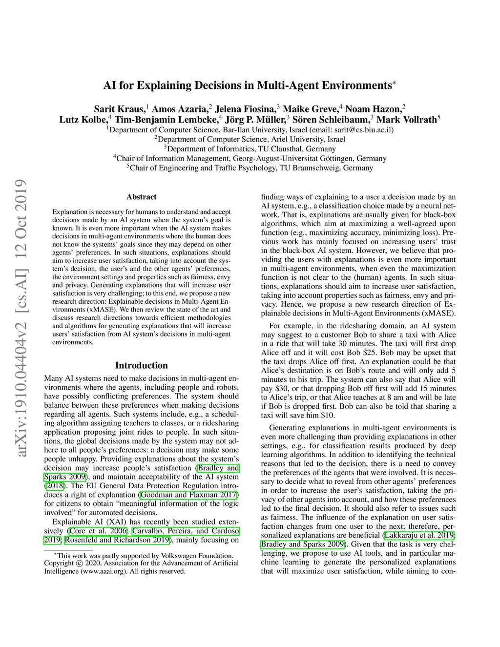 AI for Explaining Decisions in Multi-Agent Environments