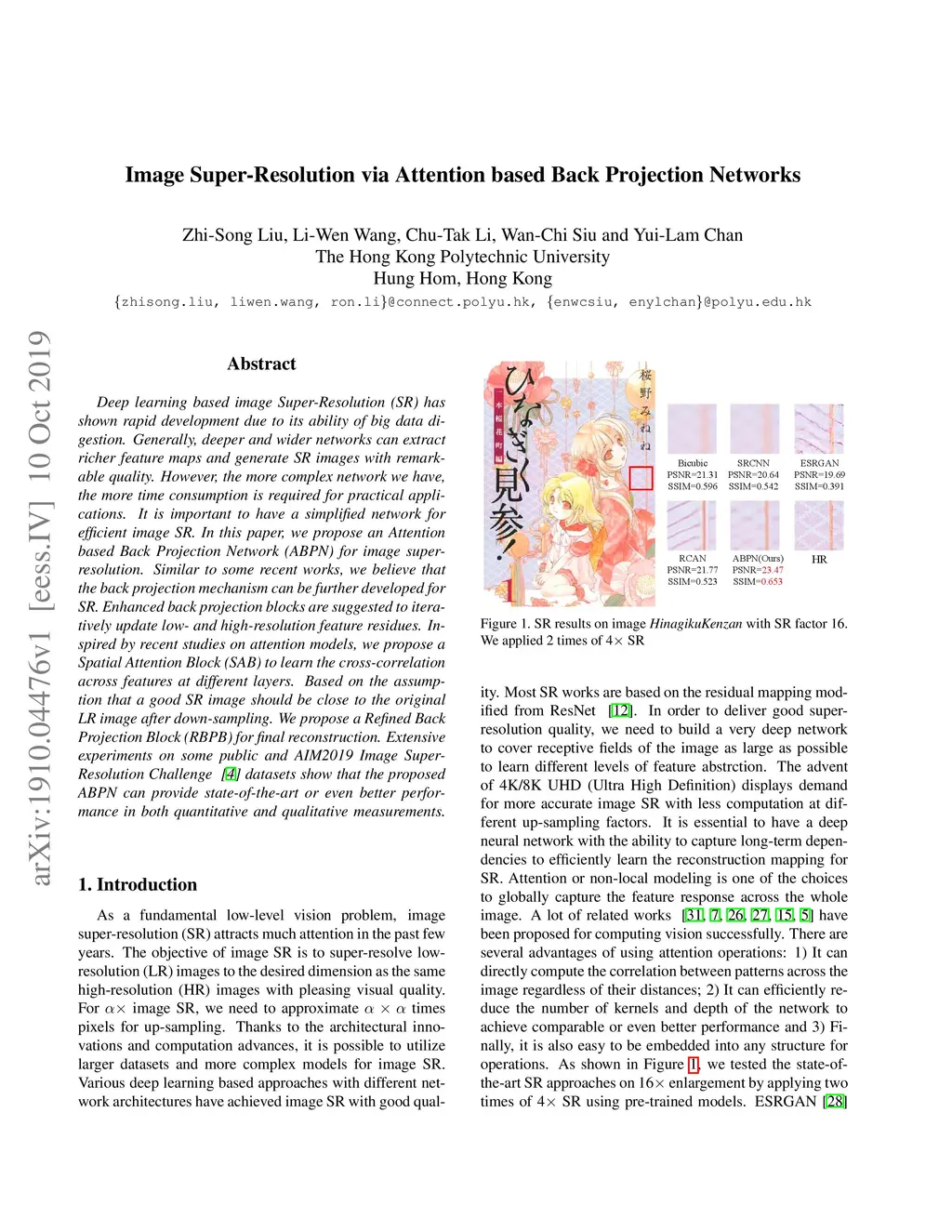 Image Super-Resolution via Attention based Back Projection Networks