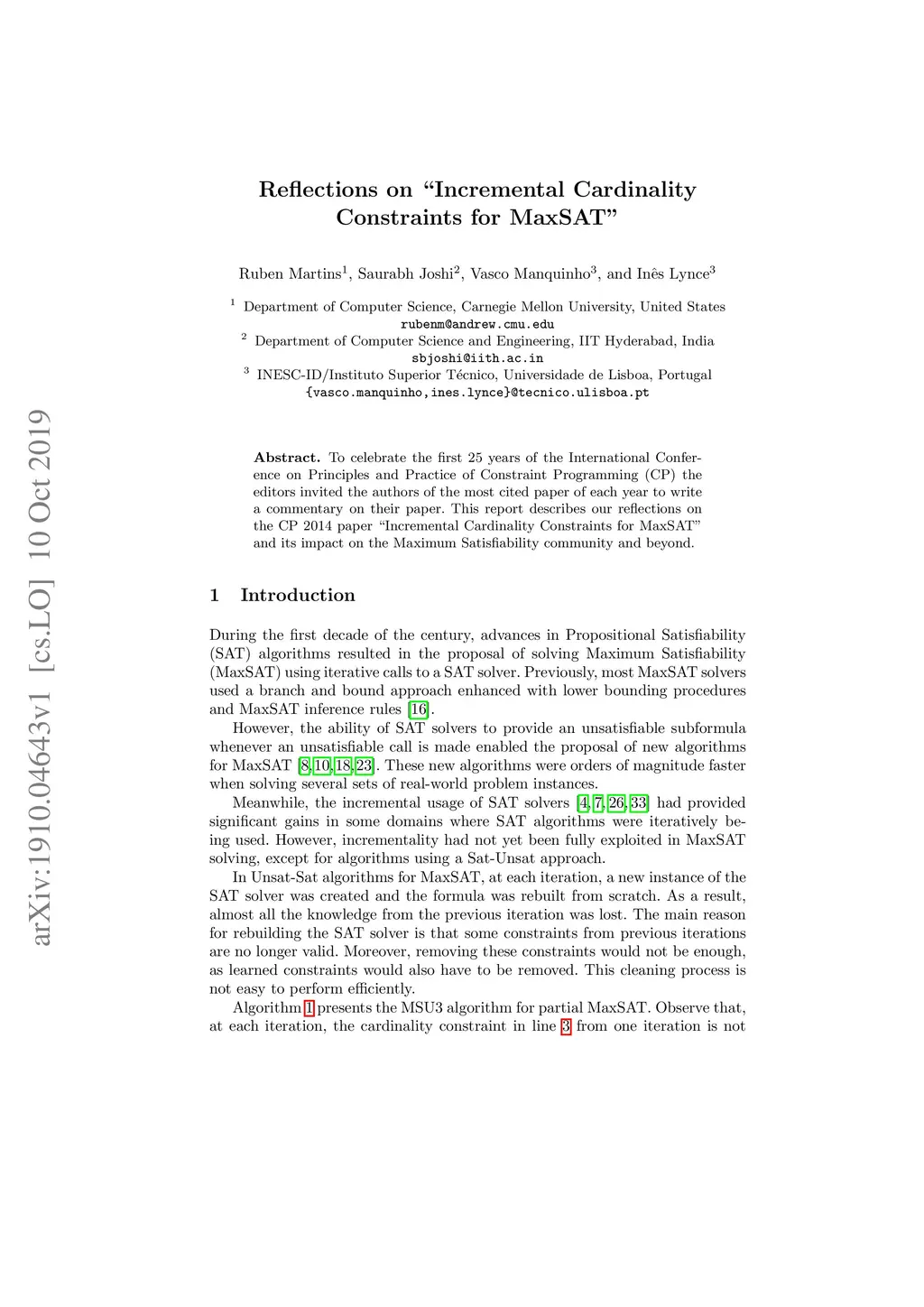To celebrate the first 25 years of the International Conference on Principles and Practice of Constraint Programming (CP) the editors invited the authors of the most cited paper of each year to write a commentary on their paper. This report describes our reflections on the CP 2014 paper "Incremental Cardinality Constraints for MaxSAT" and its impact on the Maximum Satisfiability community and beyond.