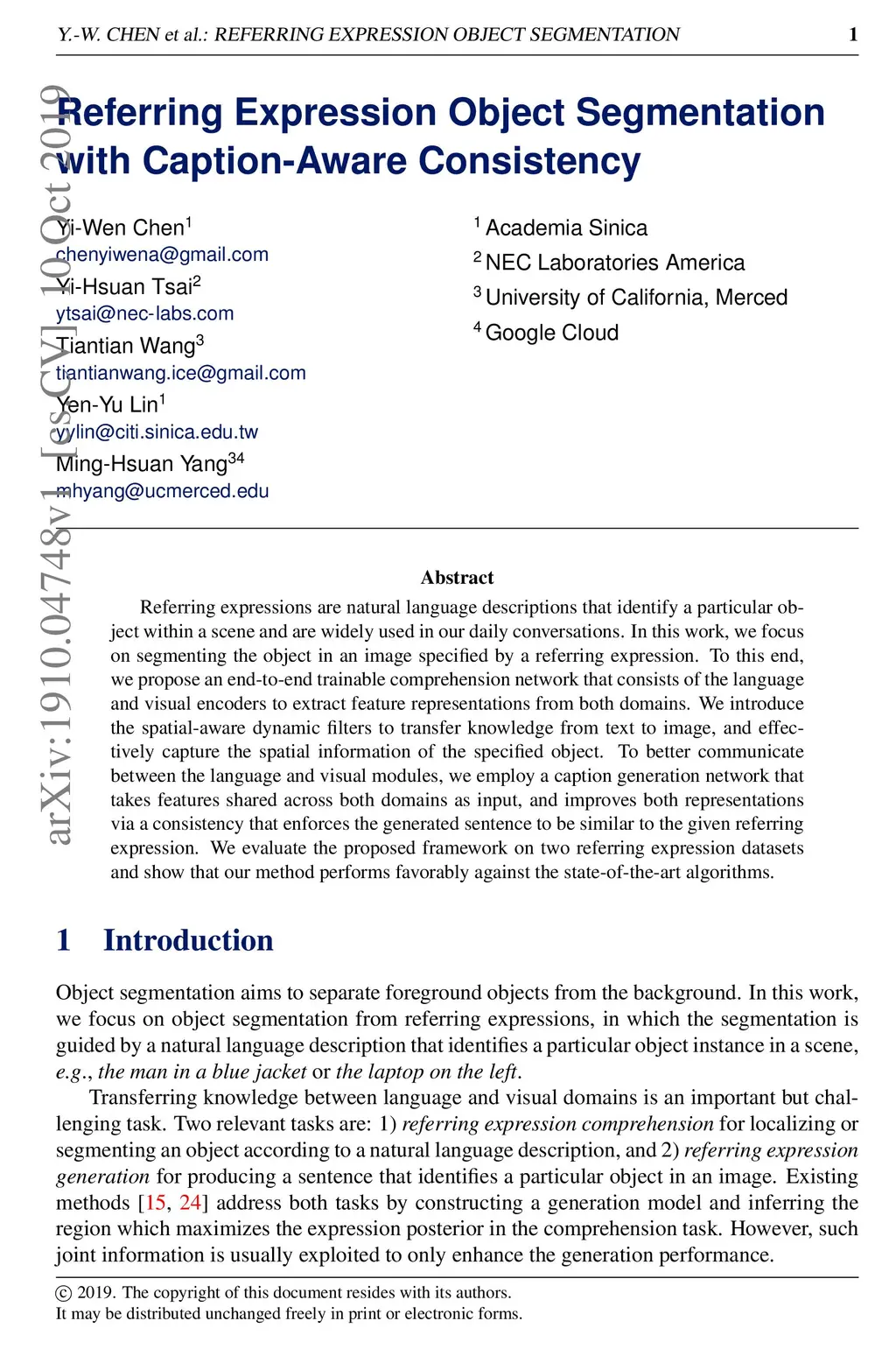 Referring Expression Object Segmentation with Caption-Aware Consistency