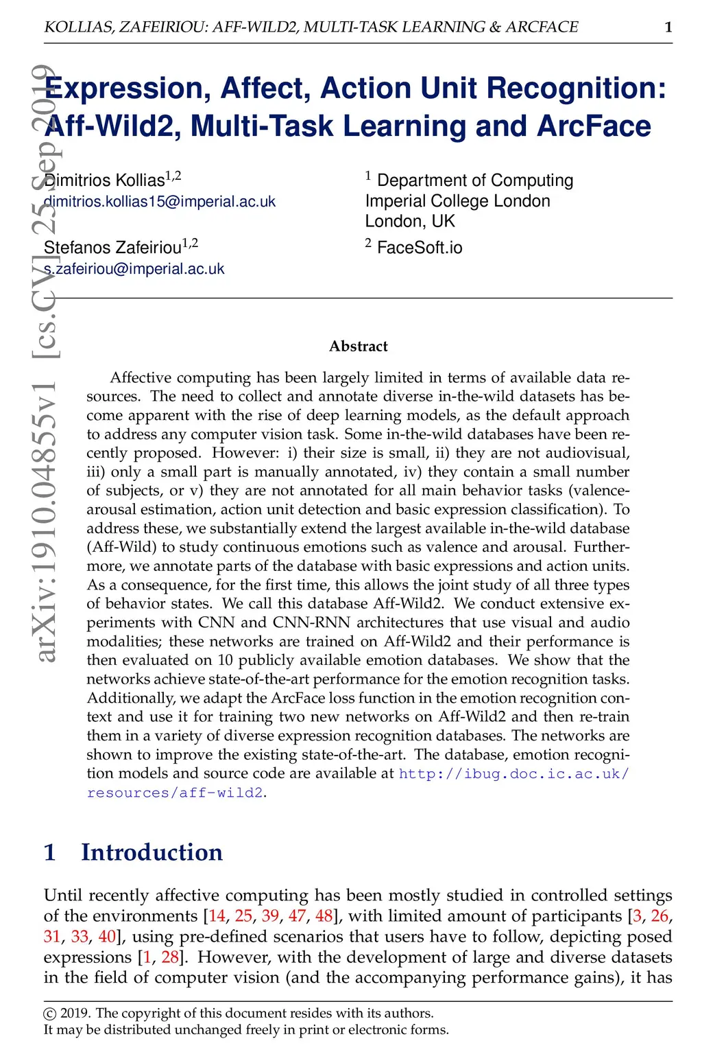 Expression, Affect, Action Unit Recognition: Aff-Wild2, Multi-Task