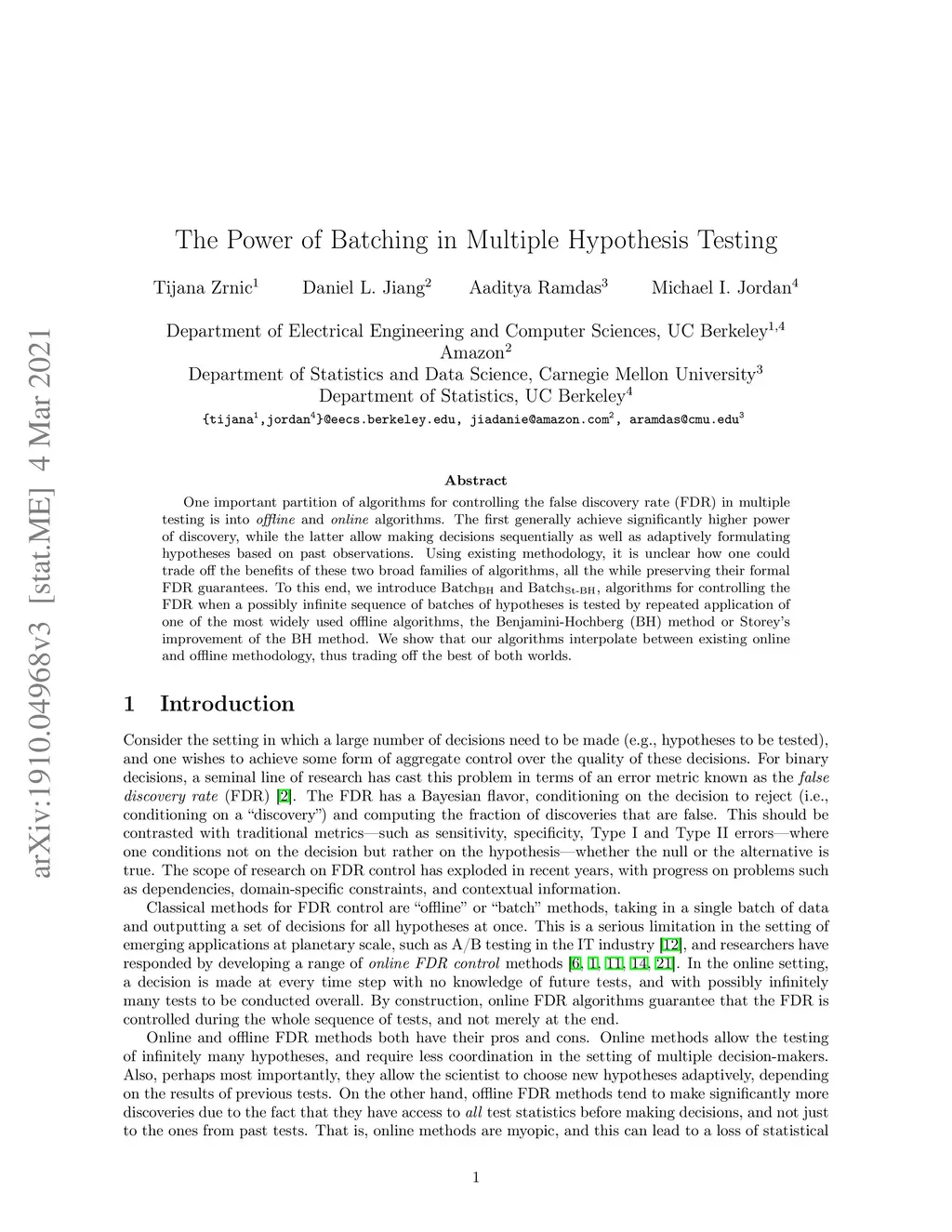 The Power of Batching in Multiple Hypothesis Testing