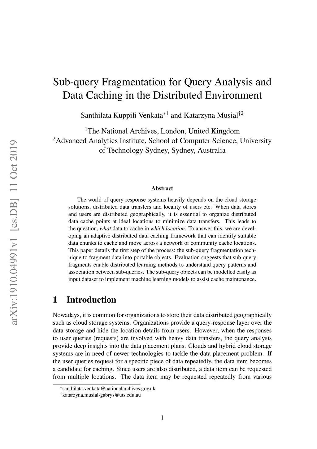 Sub-query Fragmentation for Query Analysis and Data Caching in the