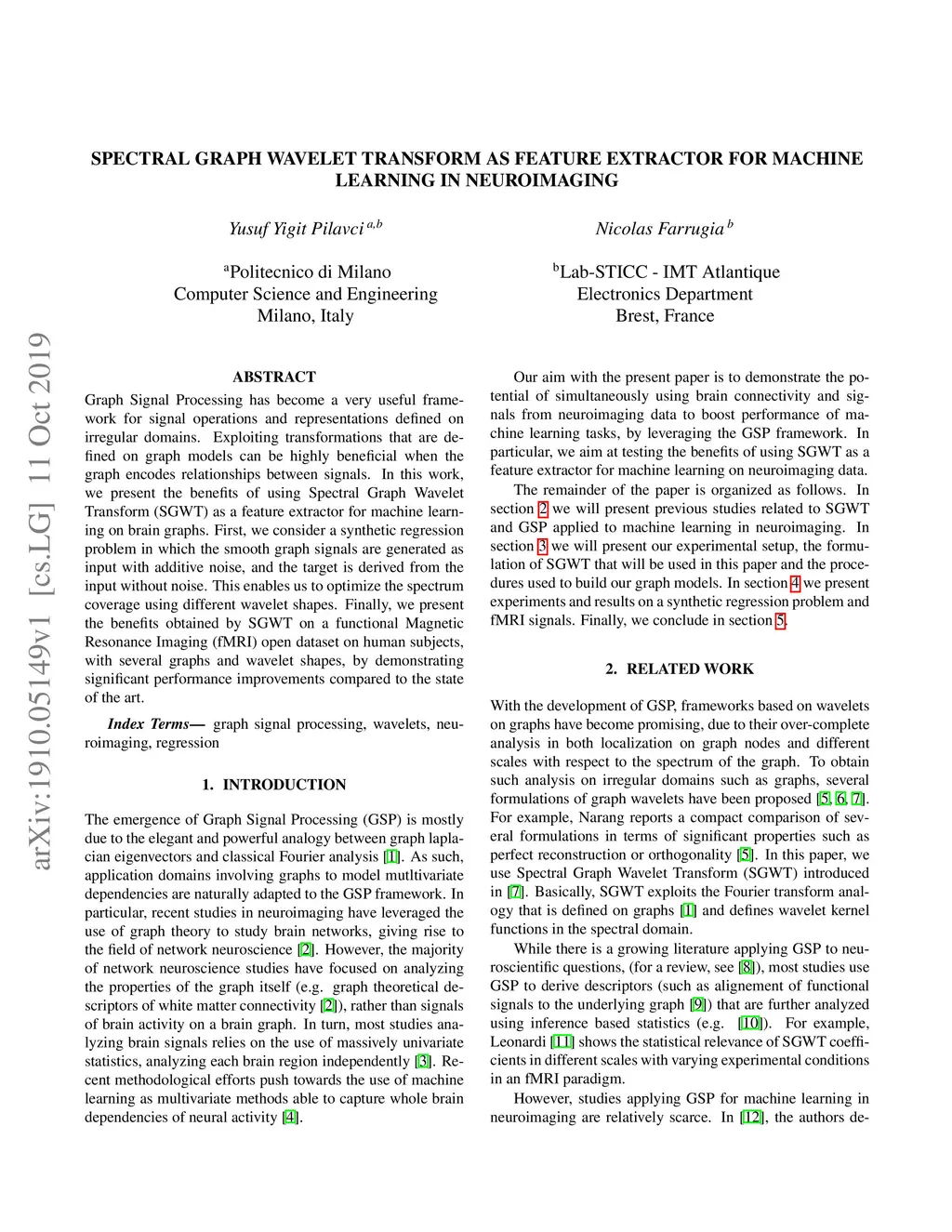Spectral Graph Wavelet Transform as Feature Extractor for Machine