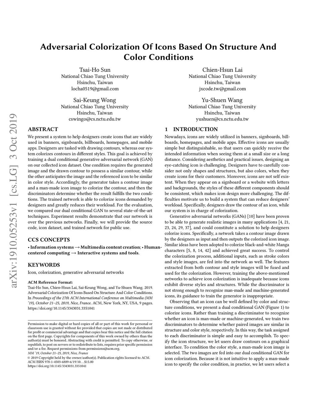 Adversarial Colorization Of Icons Based On Structure And Color