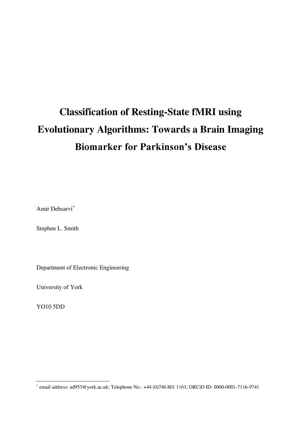 Classification of Resting-State fMRI using Evolutionary Algorithms: