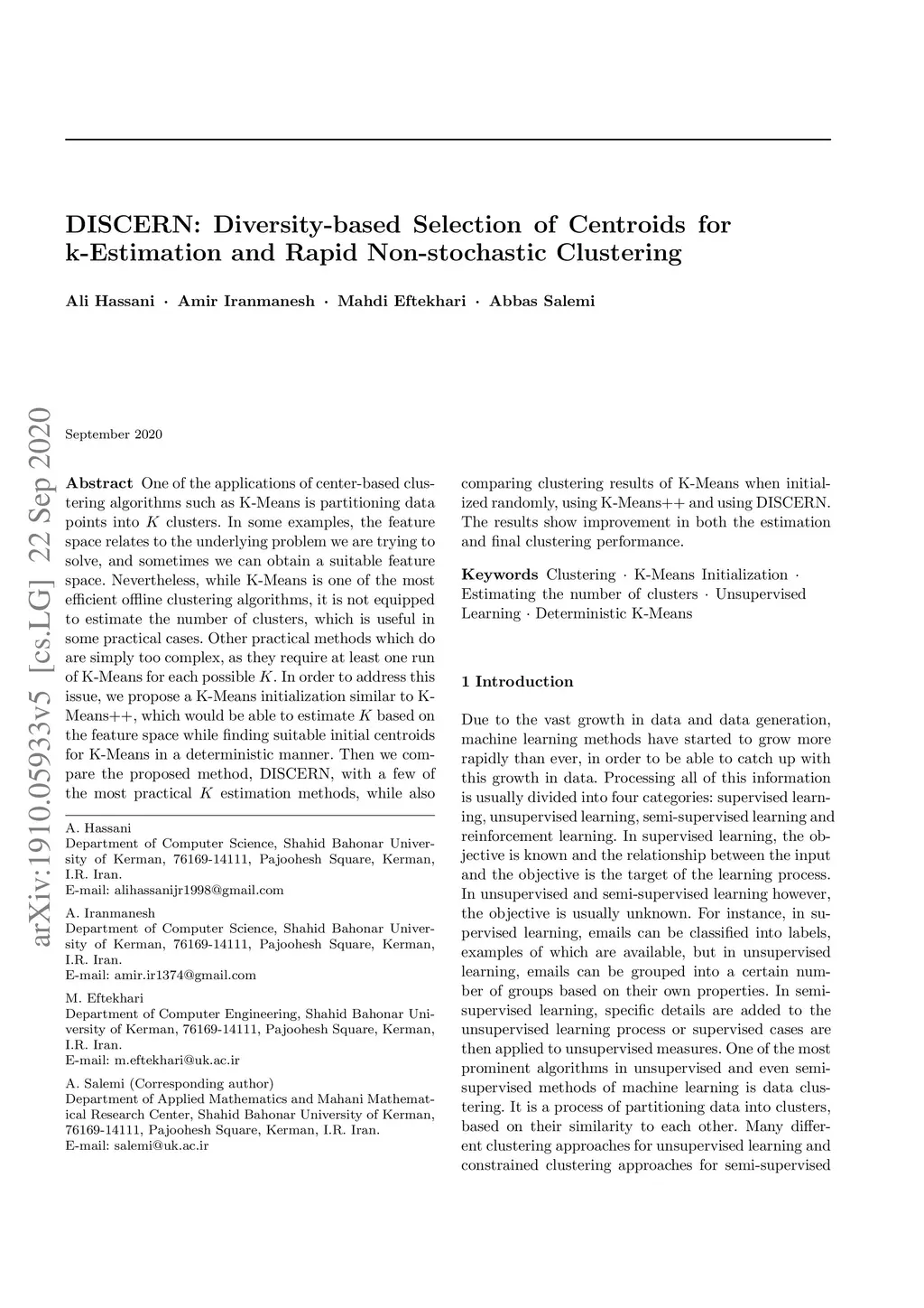 DISCERN: Diversity-based Selection of Centroids for k-Estimation and