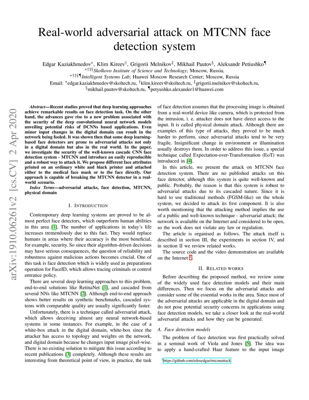 Real-world adversarial attack on MTCNN face detection system