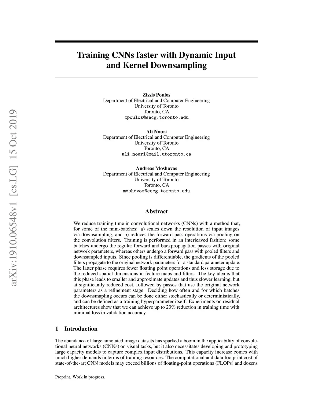 Training CNNs faster with Dynamic Input and Kernel Downsampling
