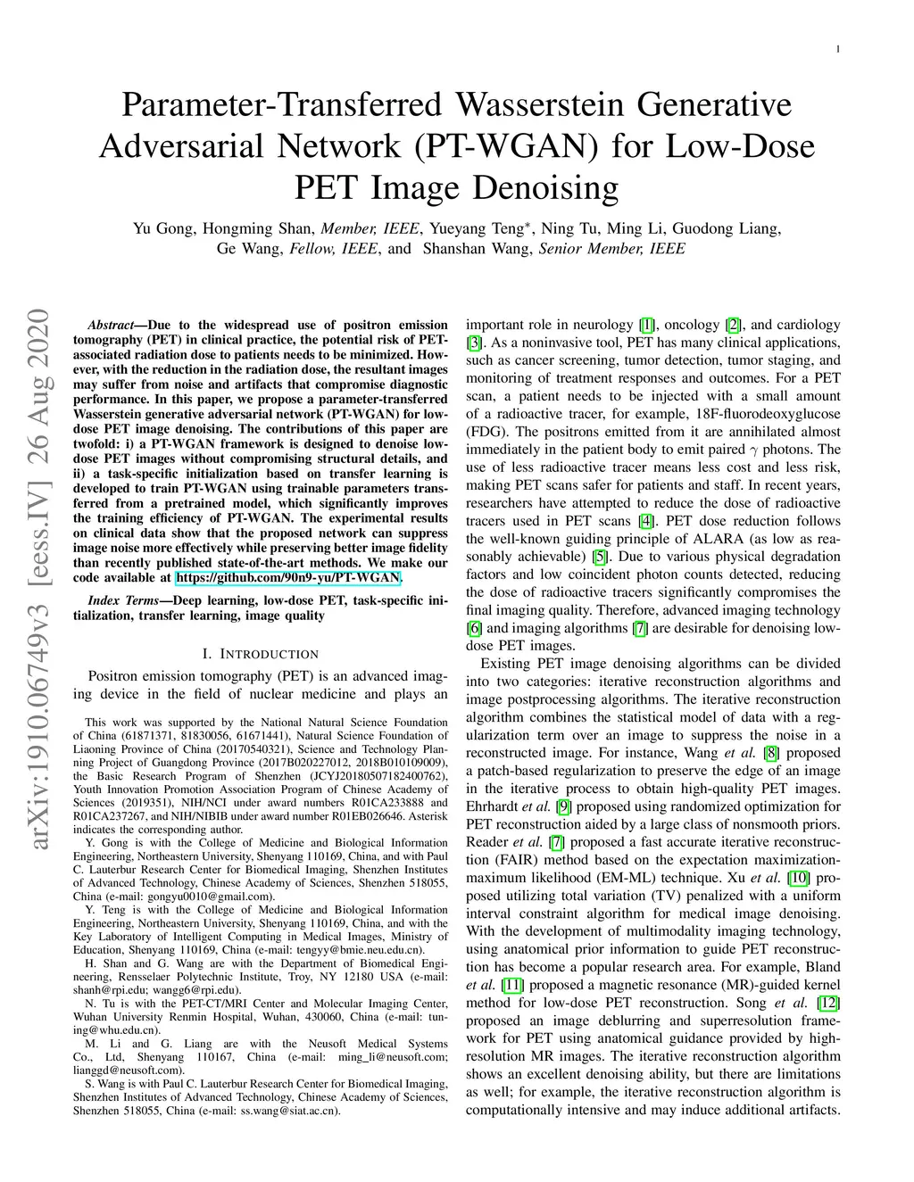 (PT-WGAN) for Low-Dose PET Image Denoising