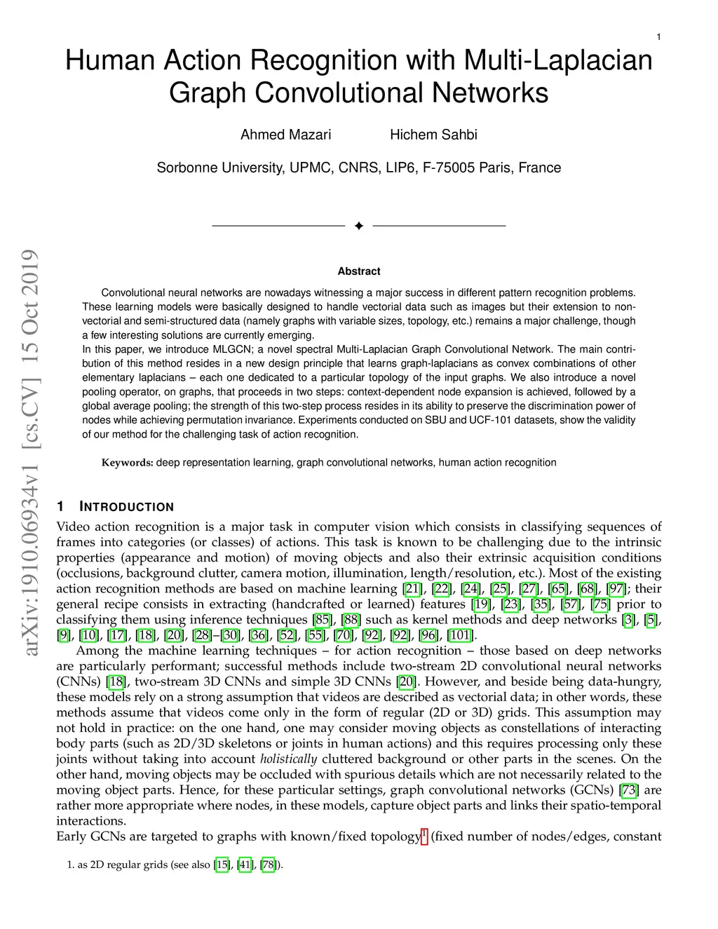 Human Action Recognition with Multi-Laplacian Graph Convolutional