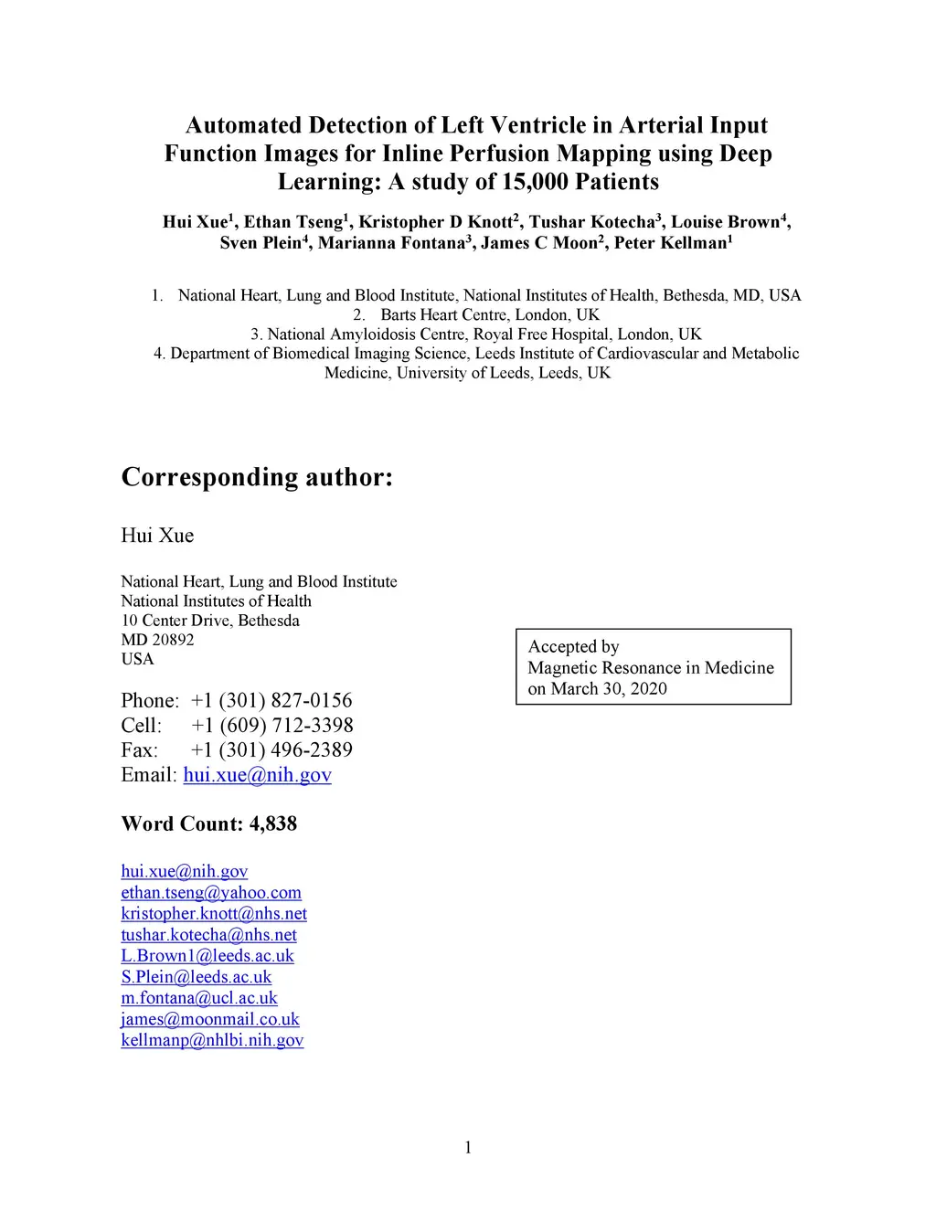 Automated Detection of Left Ventricle in Arterial Input Function Images