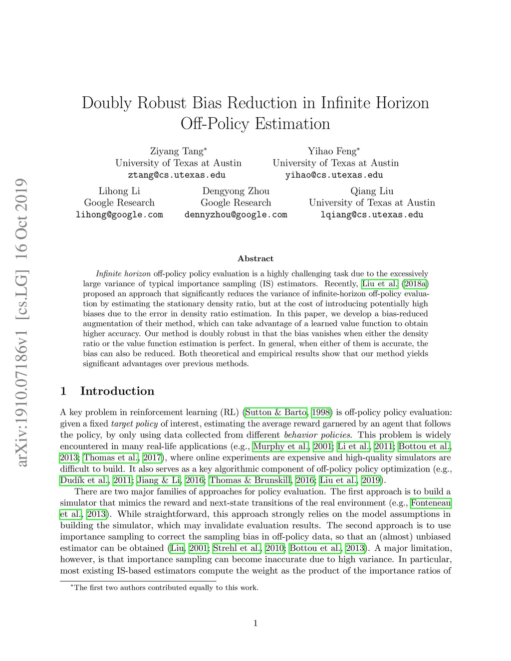 Doubly Robust Bias Reduction in Infinite Horizon Off-Policy Estimation
