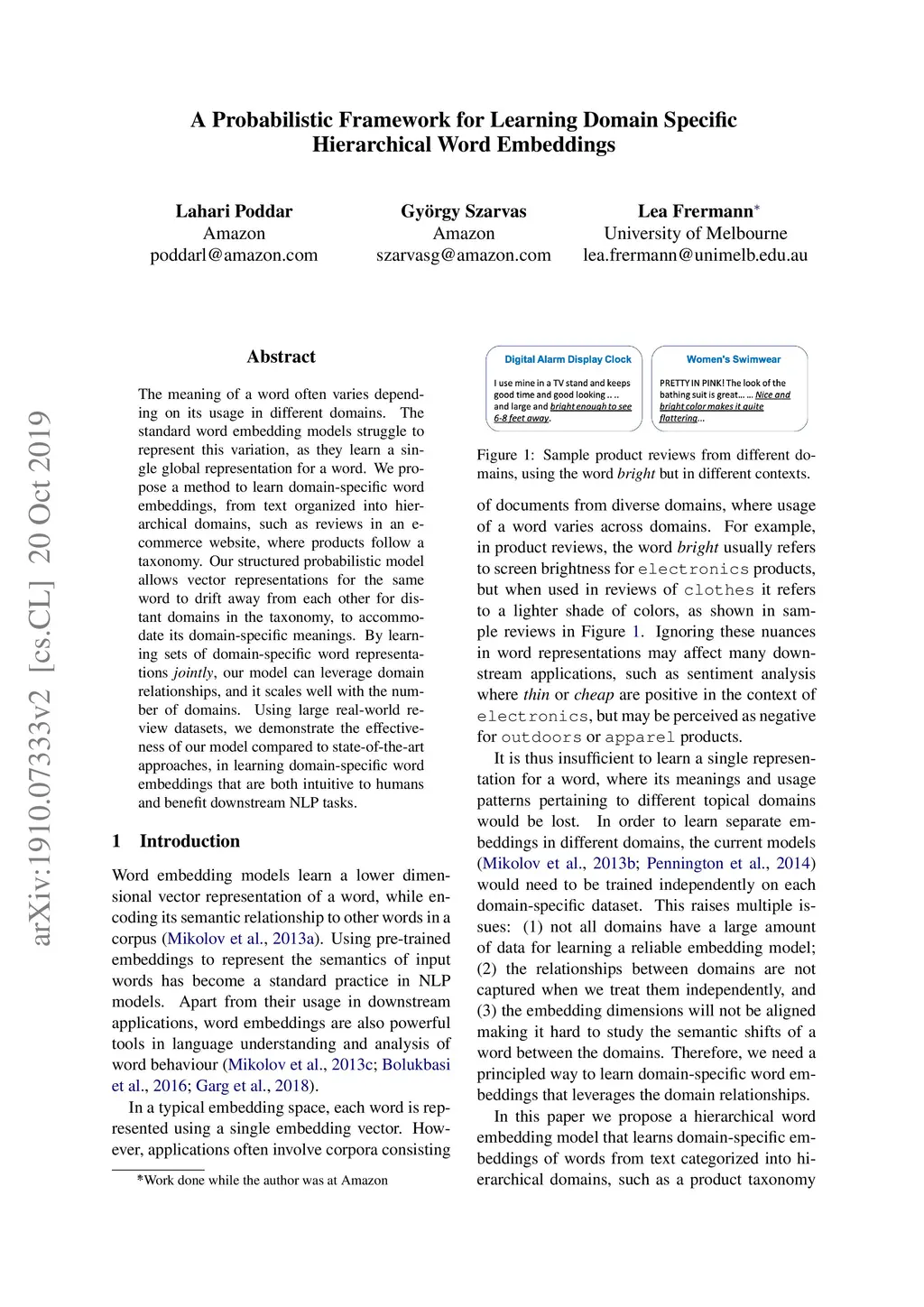 A Probabilistic Framework for Learning Domain Specific Hierarchical Word