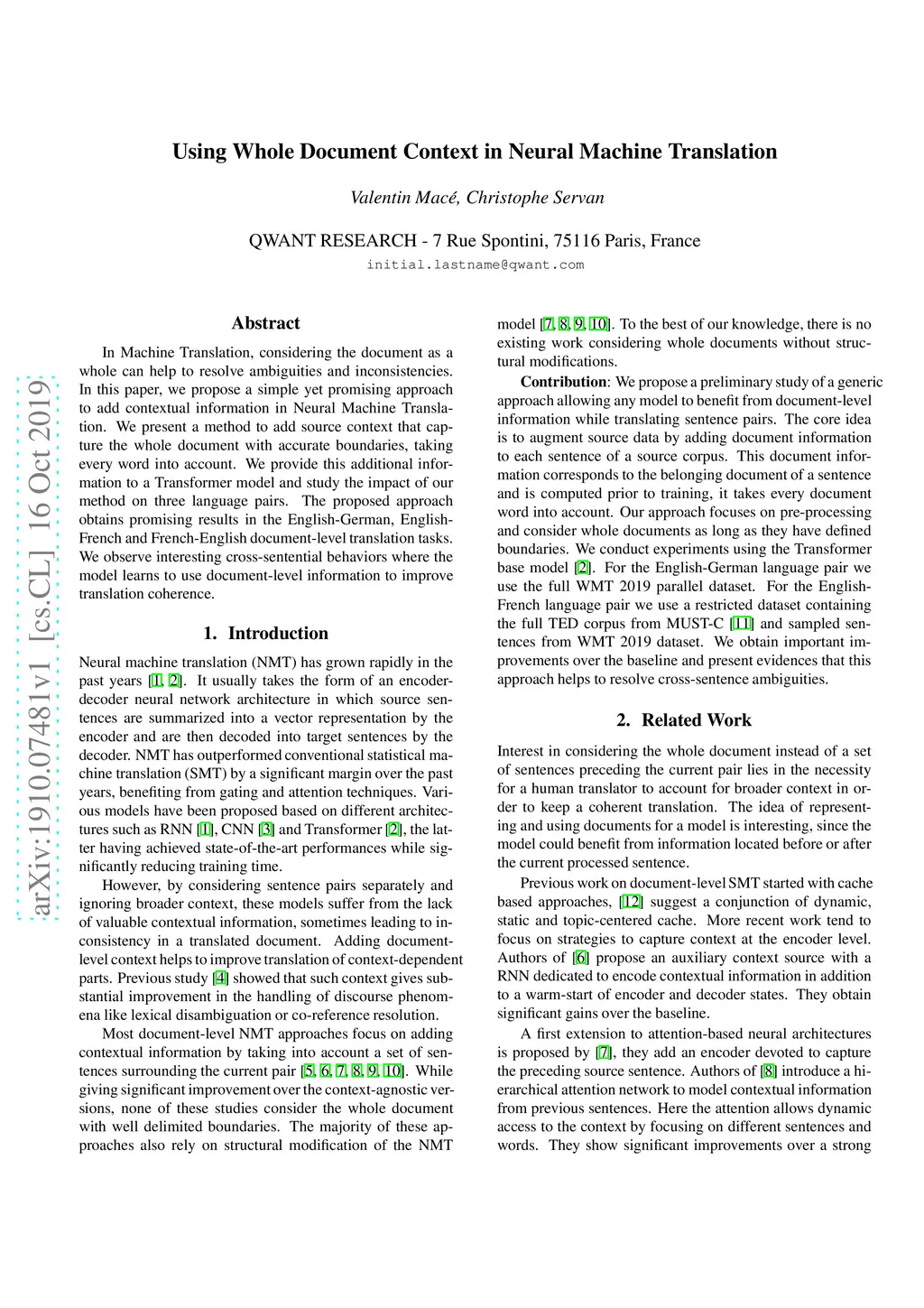 Using Whole Document Context in Neural Machine Translation
