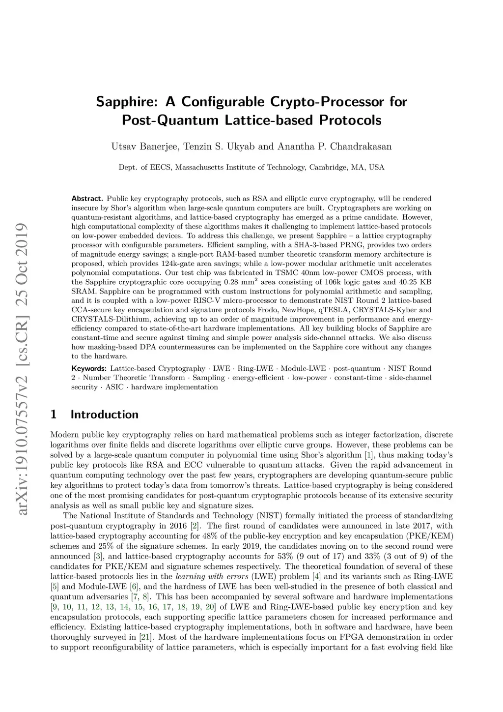 Sapphire: A Configurable Crypto-Processor for Post-Quantum Lattice-based