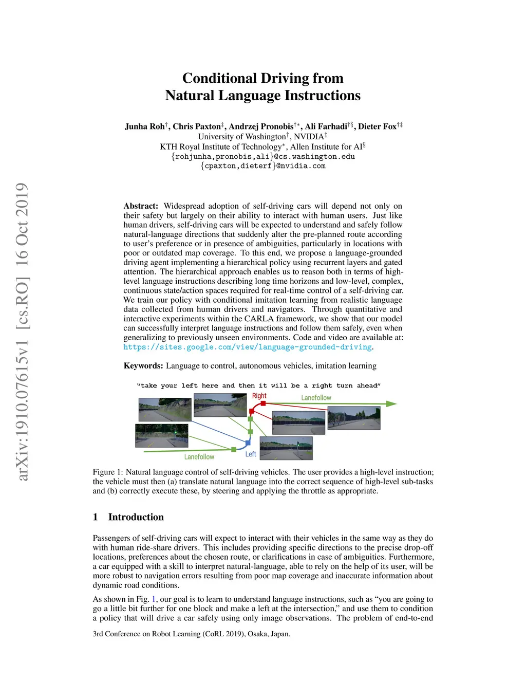 Widespread adoption of self-driving cars will depend not only on their safety but largely on their ability to interact with human users. Just like human drivers, self-driving cars will be expected to understand and safely follow natural-language directions that suddenly alter the pre-planned route according to user's preference or in presence of ambiguities, particularly in locations with poor or outdated map coverage. To this end, we propose a language-grounded driving agent implementing a hierarchical policy using recurrent layers and gated attention. The hierarchical approach enables us to reason both in terms of high-level language instructions describing long time horizons and low-level, complex, continuous state/action spaces required for real-time control of a self-driving car. We train our policy with conditional imitation learning from realistic language data collected from human drivers and navigators. Through quantitative and interactive experiments within the CARLA framework, we show that our model can successfully interpret language instructions and follow them safely, even when generalizing to previously unseen environments. Code and video are available at https://sites.google.com/view/language-grounded-driving.