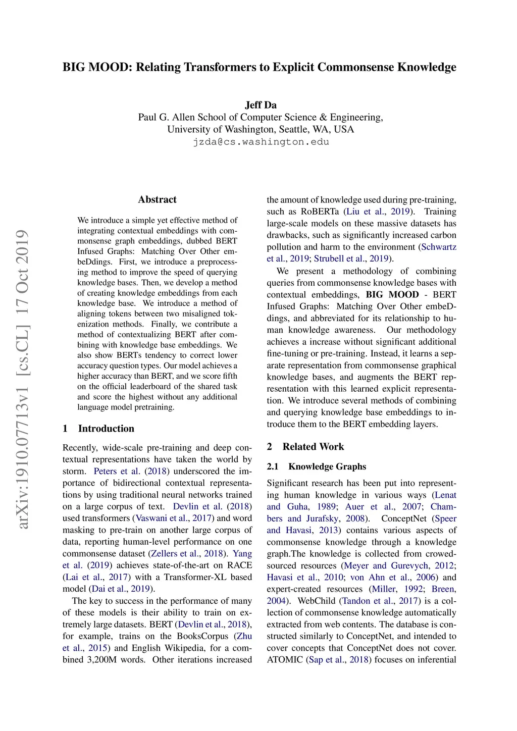 BIG MOOD: Relating Transformers to Explicit Commonsense Knowledge