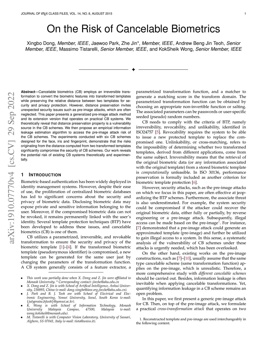 Cancelable biometrics (CB) employs an irreversible transformation to convert the biometric features into transformed templates while preserving the relative distance between two templates for security and privacy protection. However, distance preservation invites unexpected security issues such as pre-image attacks, which are often neglected.This paper presents a generalized pre-image attack method and its extension version that operates on practical CB systems. We theoretically reveal that distance preservation property is a vulnerability source in the CB schemes. We then propose an empirical information leakage estimation algorithm to access the pre-image attack risk of the CB schemes. The experiments conducted with six CB schemes designed for the face, iris and fingerprint, demonstrate that the risks originating from the distance computed from two transformed templates significantly compromise the security of CB schemes. Our work reveals the potential risk of existing CB systems theoretically and experimentally.