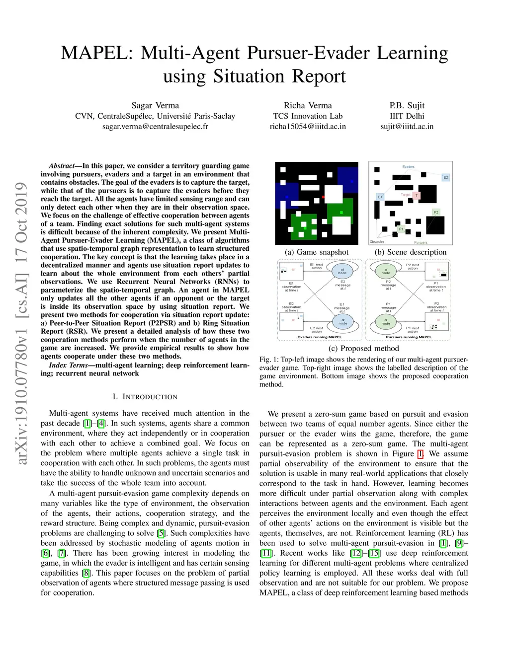 MAPEL: Multi-Agent Pursuer-Evader Learning using Situation Report
